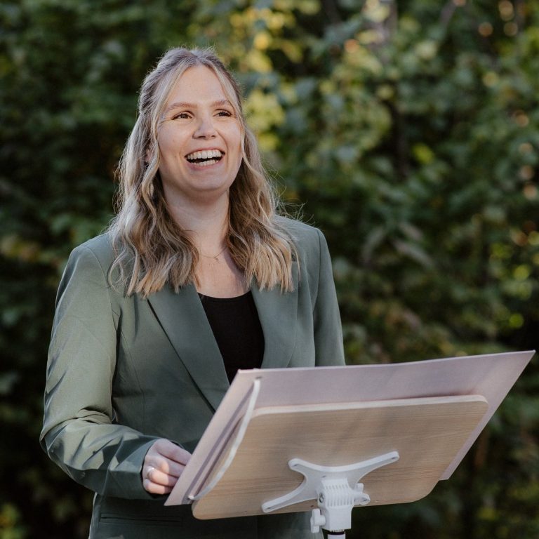 Als gelernte Verwaltungsfachangestellte suchte ich lange nach einer Ergänzung, um meine Kreativität ausleben zu können. Als freie Rednerin habe ich diese nun gefunden. Dieser Job ist meine absolute Herzensangelegenheit! Ich glaube an echte Geschichten und einzigartige Momente und ich weiß, dass Eure Geschichte etwas ganz Besonderes ist.